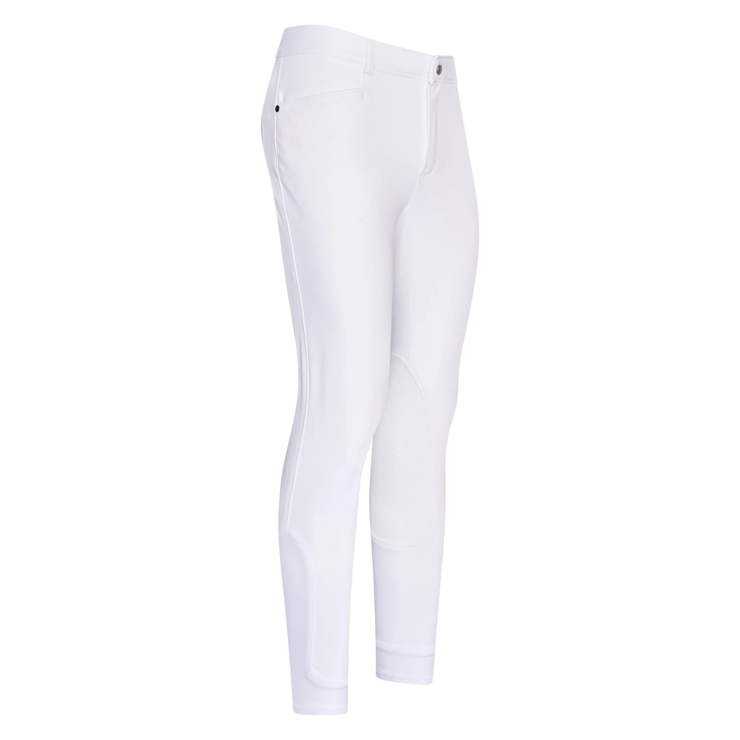 Euro-Star’s most popular men’s riding breeches; These Camillo breeches are made from an all-year extra fine microstretch fabric which is water- and stain resistant. The discreet and classic design has a regular fit and a medium-high waistband. At the front, on the left and right, there are two slightly diagonal pockets with small decorative seams at the outer edges. The flap pockets at the rear have classic buttons. The breeches are finished with elastic leg bottoms for extra wearing comfort.
